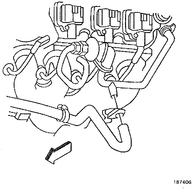 8. Disconnect the fuel lines (3 and 4) from the fuel rail.