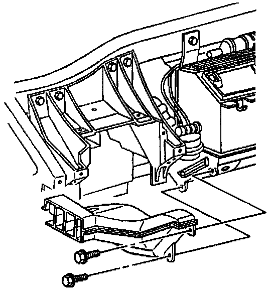 The passenger rear upper heater duct is attached to the bottom of the HVAC module and runs down the along the side of the center stack support to the passenger rear lower heater duct.