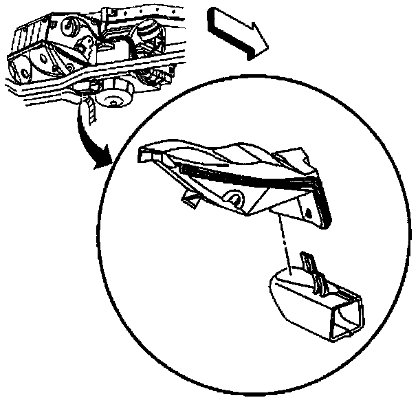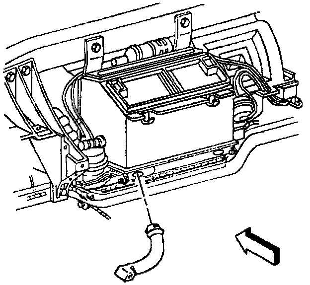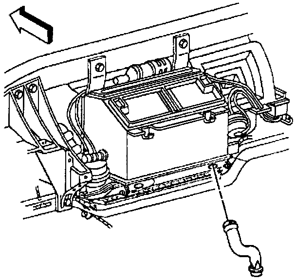 The upper passenger front heater duct is attached on the RH side of the HVAC module and the lower passenger front heater duct clips onto the upper duct. The passenger front heater ducts direct air flow to the front part of the passenger floor near the passenger's feet.