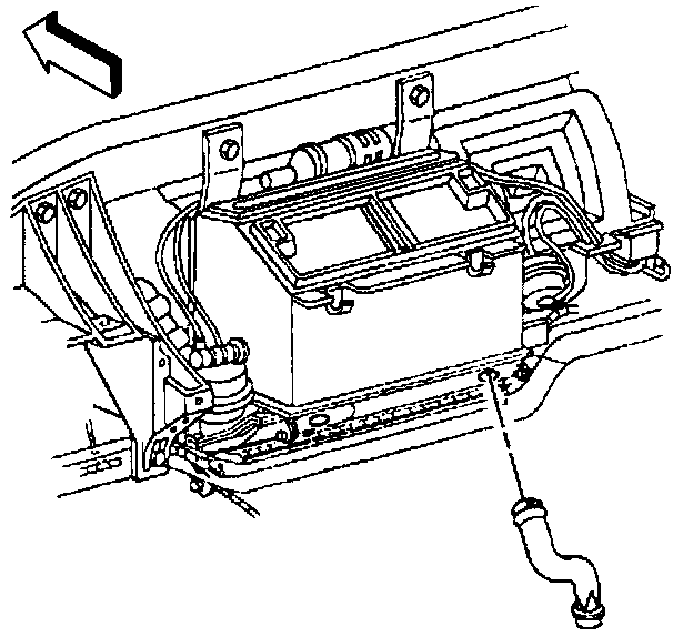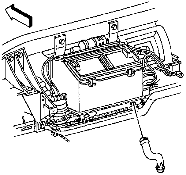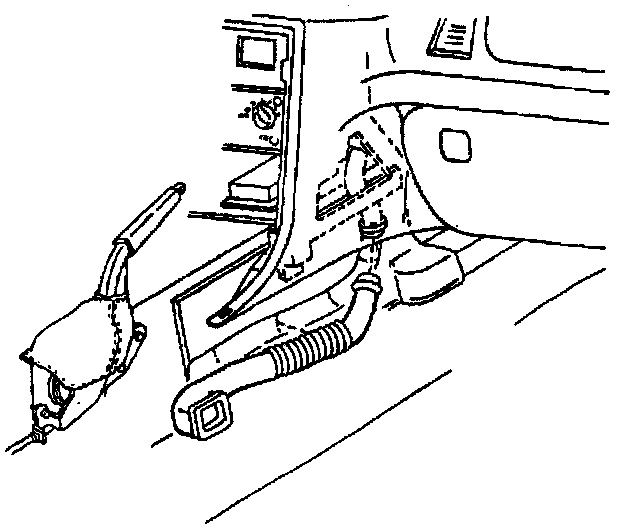 9. Lower the duct down between the I/P center support bracket and the side of the driveline tunnel, then remove the duct.