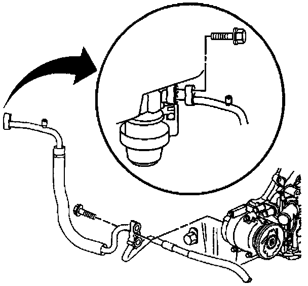 - Tighten the compressor hose bolt to the accumulator to 20 N.m (15 lb. ft).
