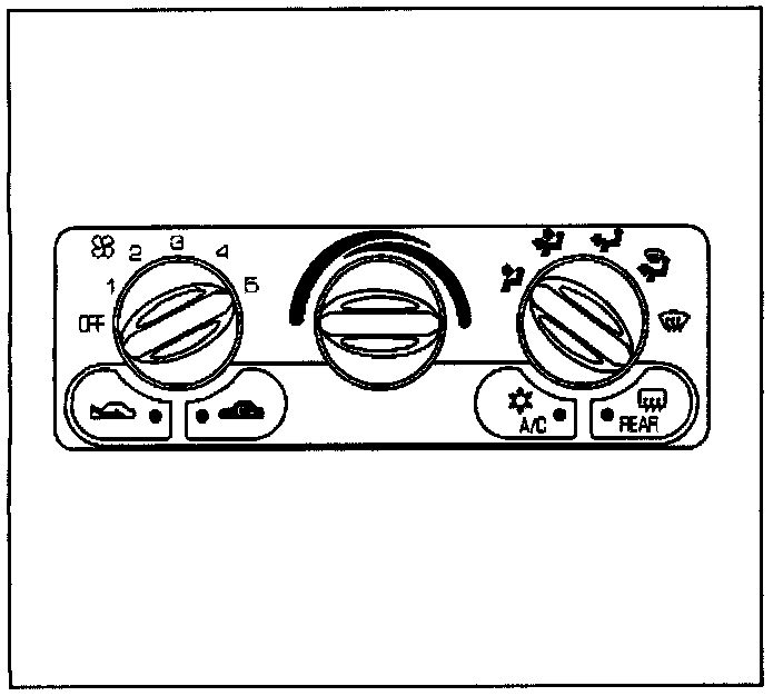 The heater and the A/C control head uses three knobs and four push buttons in order to control the following features: