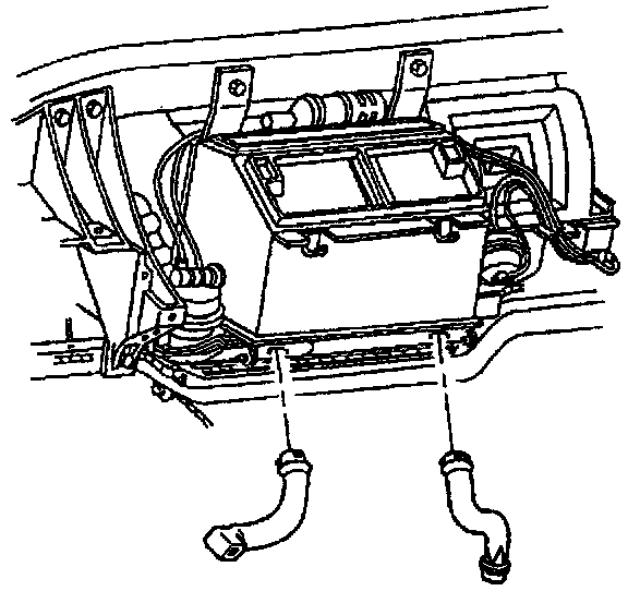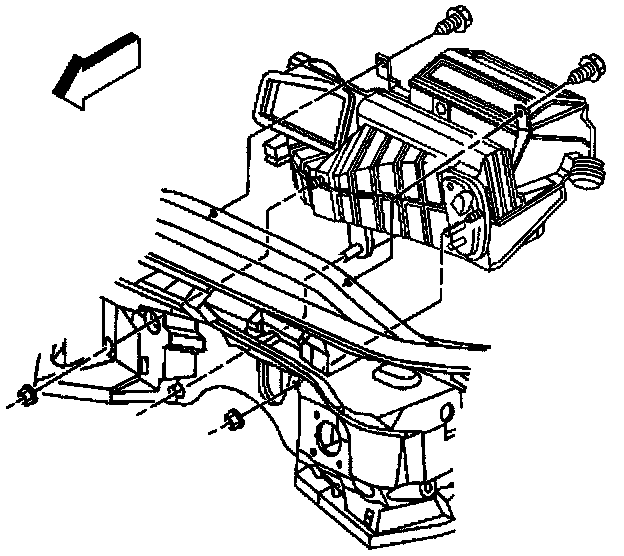 35. Remove the bolts and nuts retaining the evaporator and heater core module to the bulkhead and I/P brace.