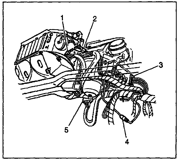 33. Disconnect the vacuum source line connection (4) from the I/P harness.