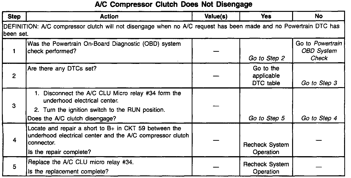 A/C Compressor Clutch Does Not Disengage