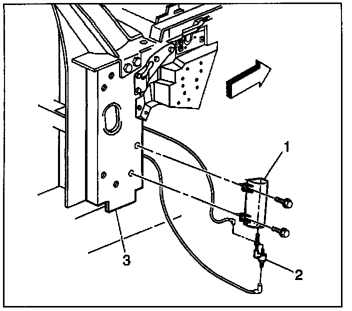 3. Install the vacuum tank (1) onto the hinge pillar (3).