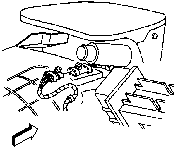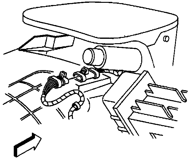 13. Connect the headlamp wiring harness electrical connector to the forward lamp wiring harness.