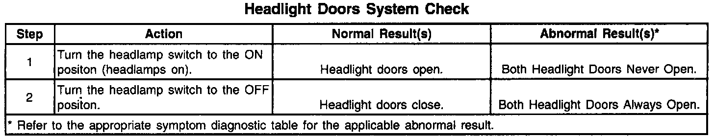 Headlight Doors System Check: