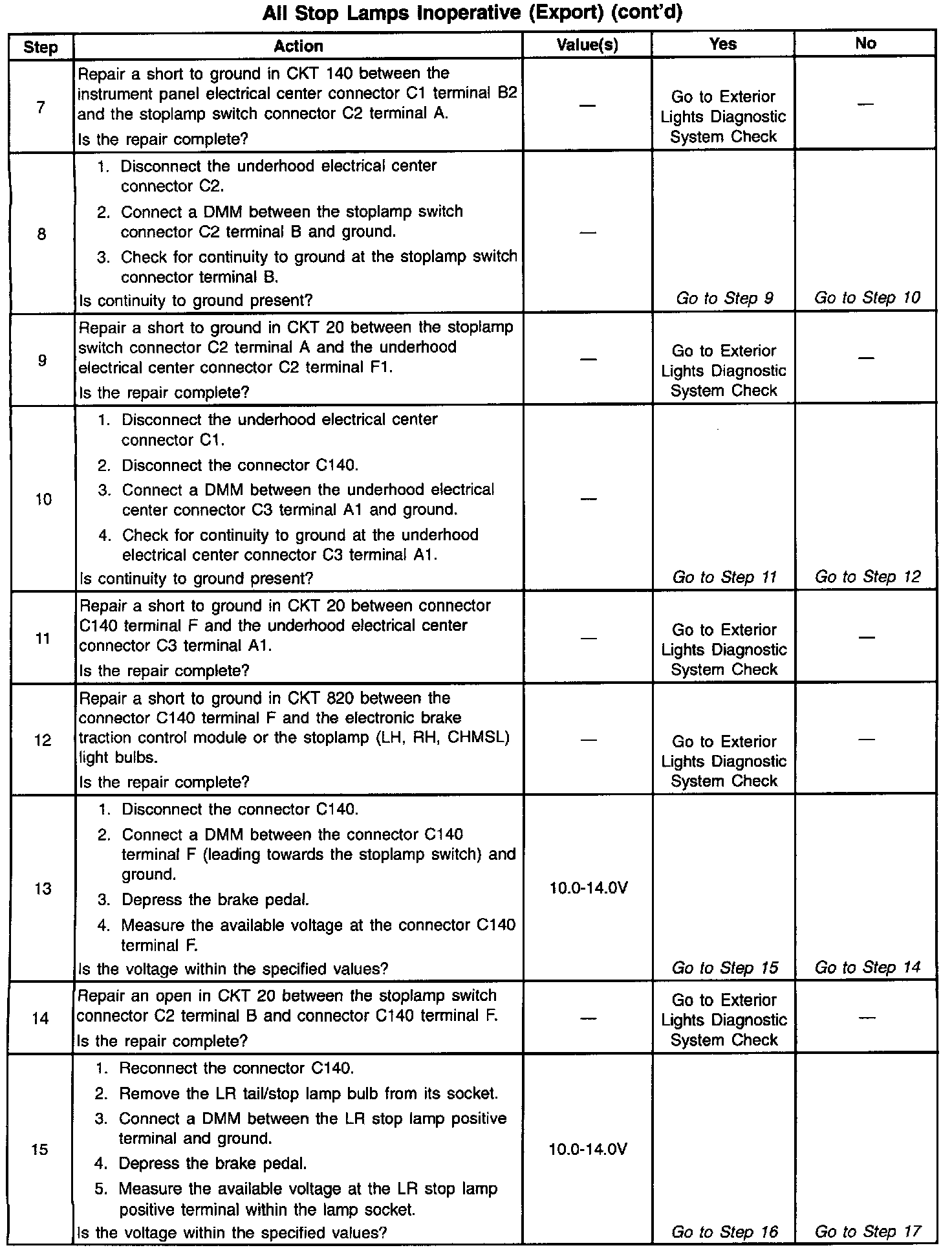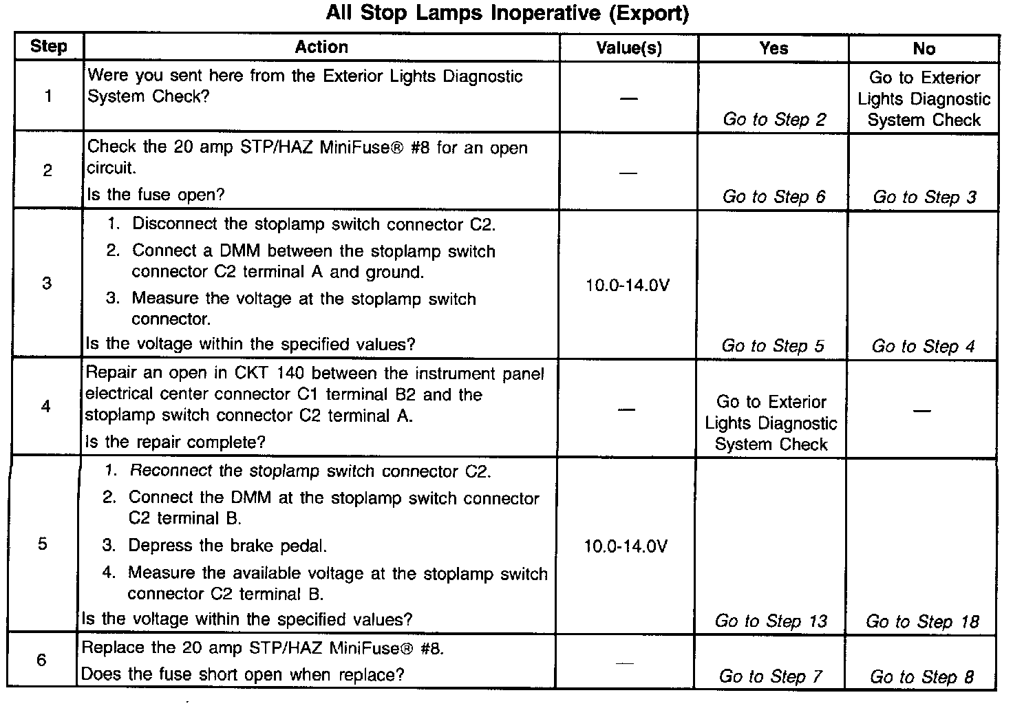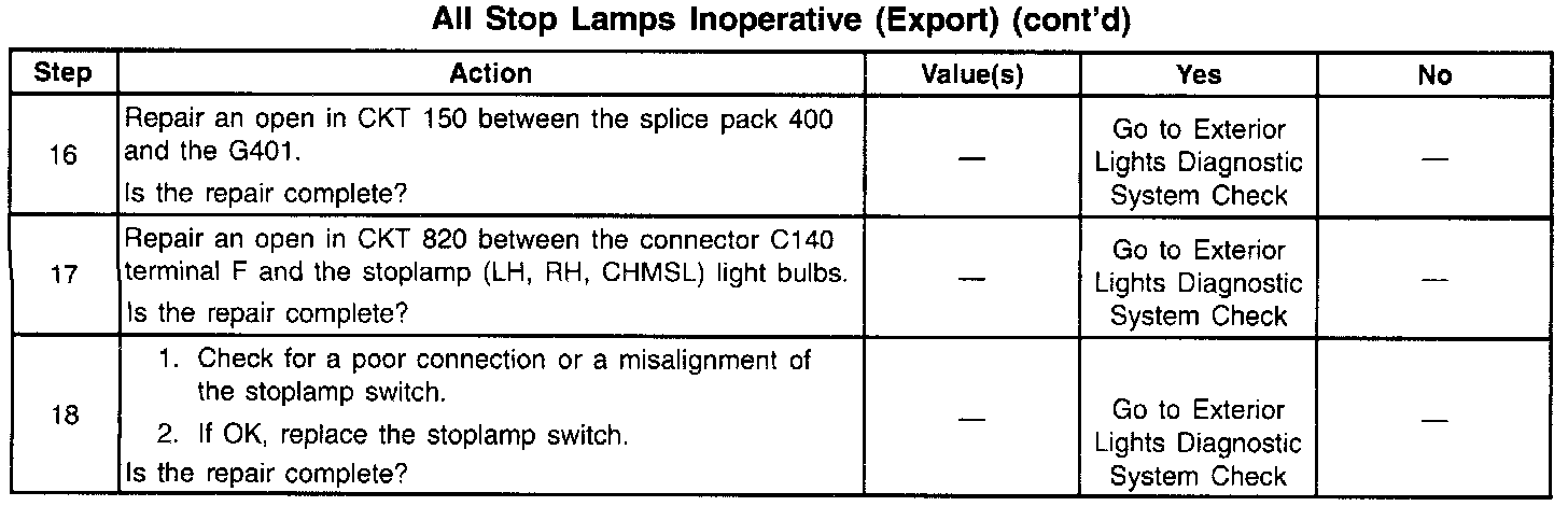 All Stop Lamps Inoperative (EXPORT) (Part 3 Of 3):
