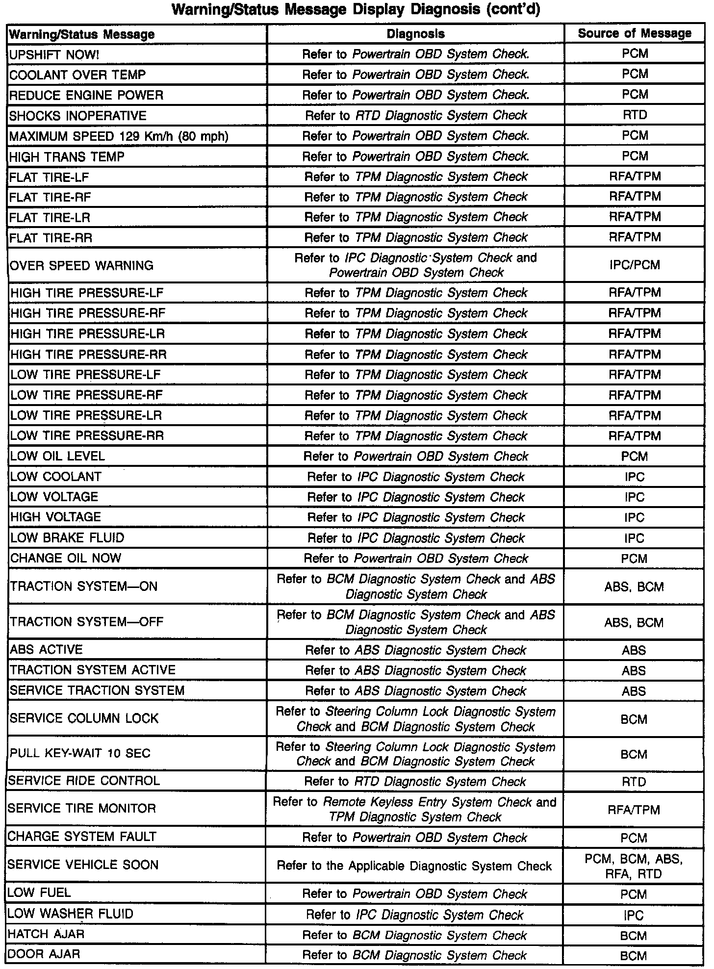Warning/Status Message Display Diagnosis (Part 2 Of 3):