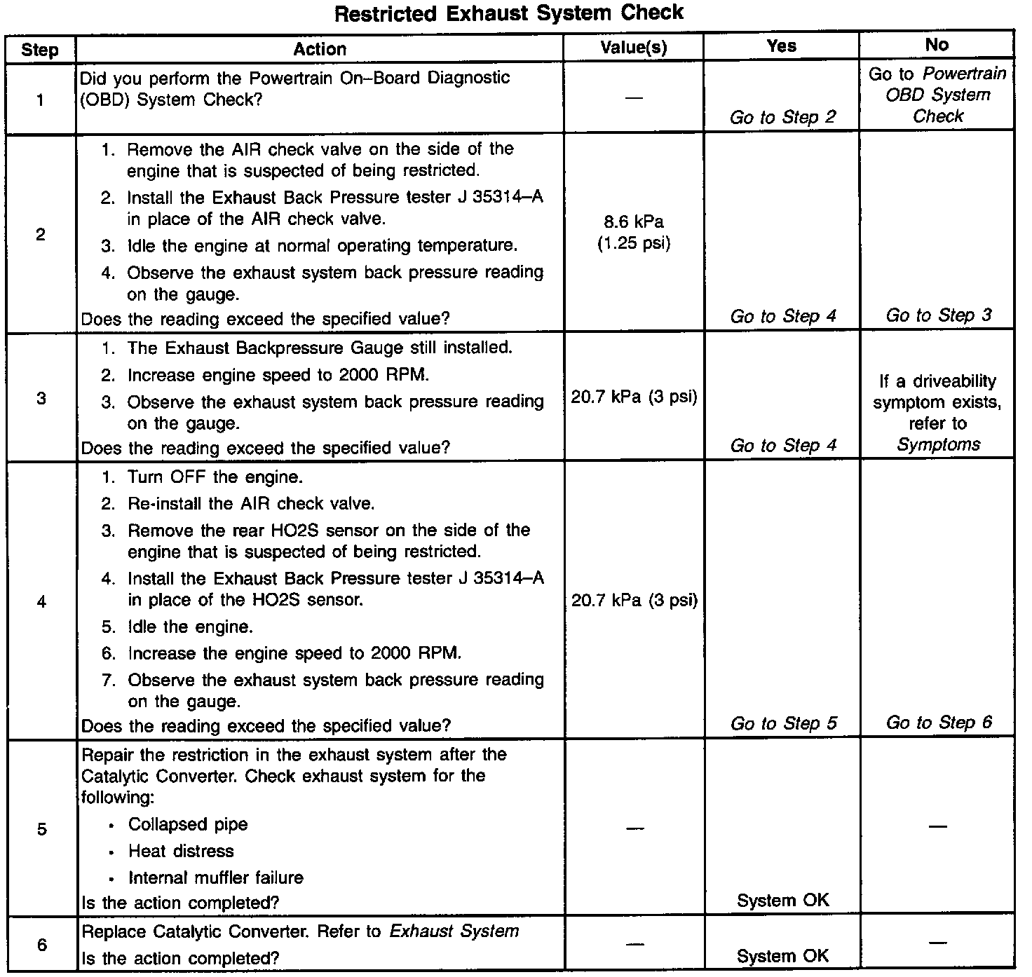 System Check - Restricted Exhaust