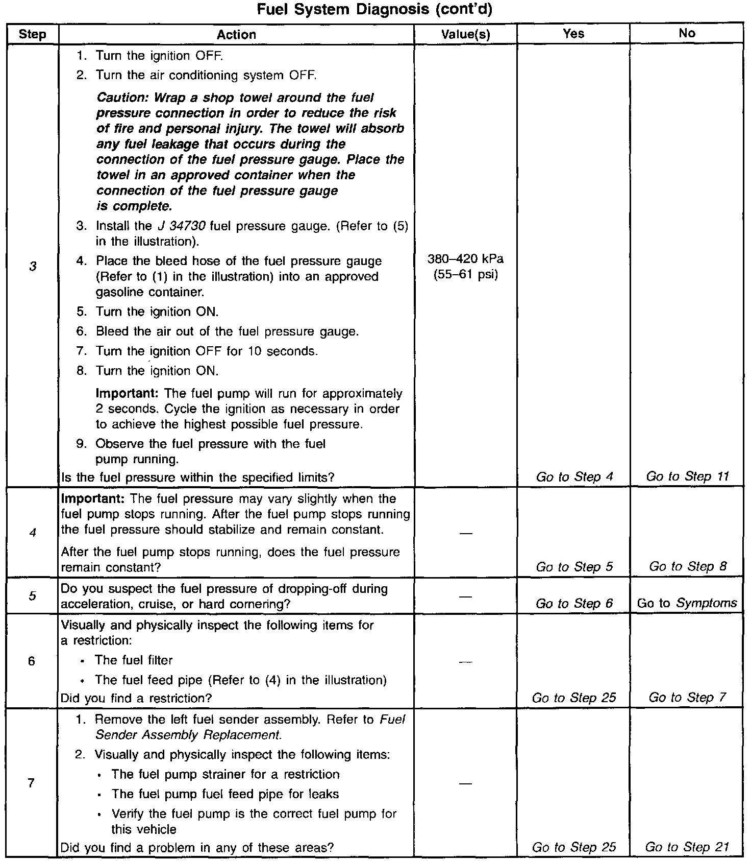 11. A rich condition may result from the fuel pressure being above 420 kPa (61 psi). A rich condition may cause DTC P0132, DTC P0152, DTC P0172 or DTC P0175 to set. Driveability conditions associated with rich conditions can include hard starting followed by black smoke and a strong sulfur smell in the exhaust.