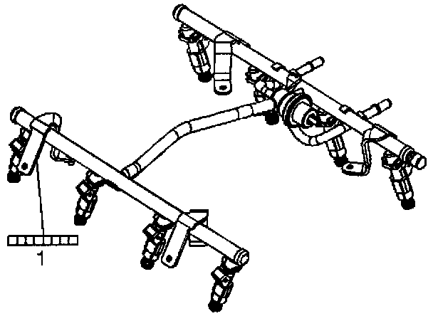 NOTE: An eight digit identification number (1) is located on the fuel rail assembly. Refer to this model identification number if servicing or part replacement is required.