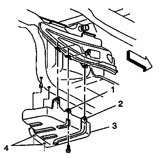 3.3. Install the remaining bolts (2 and 5). Tighten the fuel tank strap/shield bolts to 25.5 Nm (19 lb. ft.).
