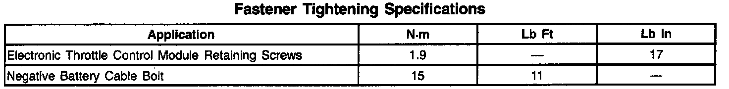 Fastener Tighting Specifications: