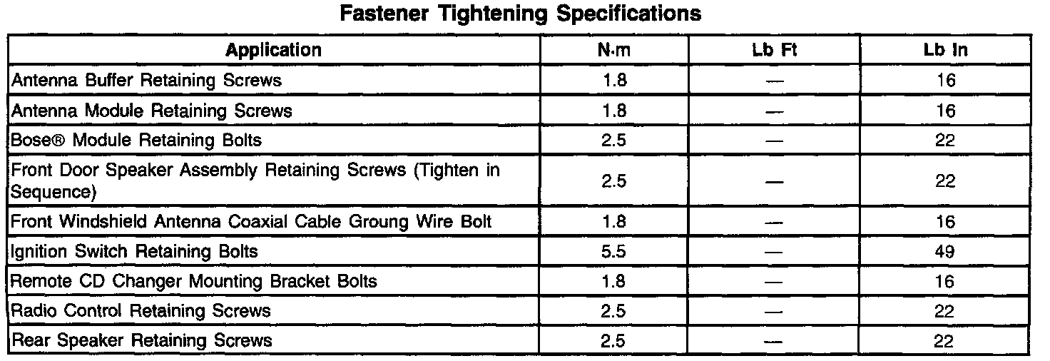 Fastener Tightening Specifications: