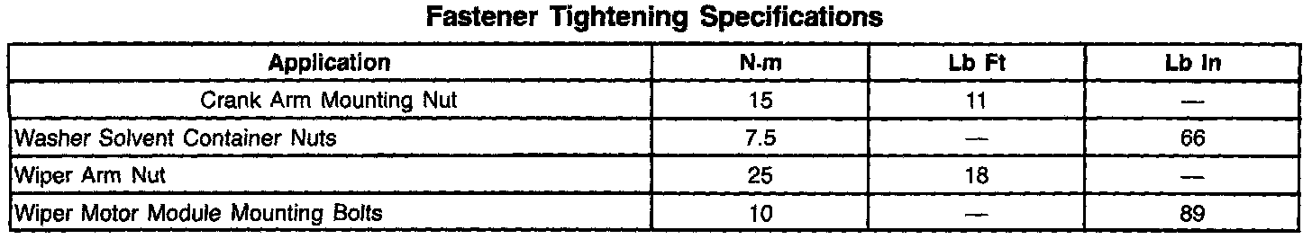 Fastener Tightening Specifications: