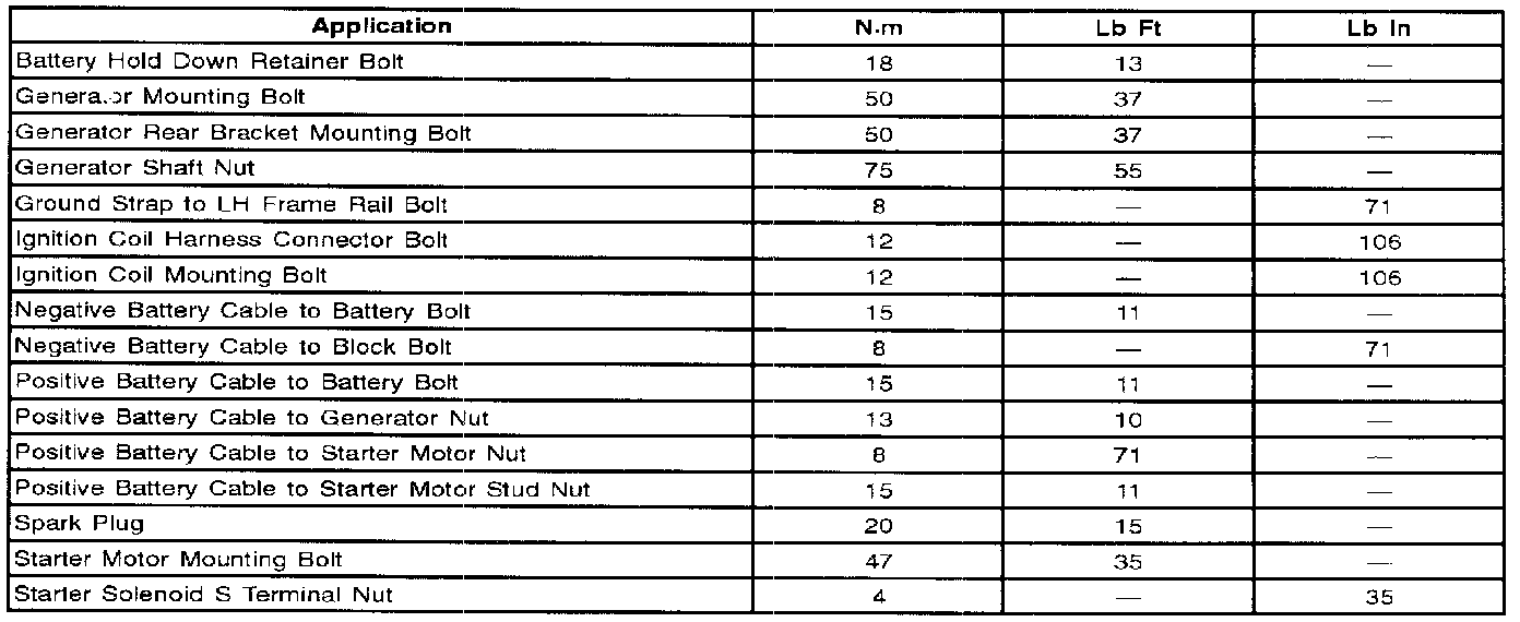 Starting and Charging: Specifications