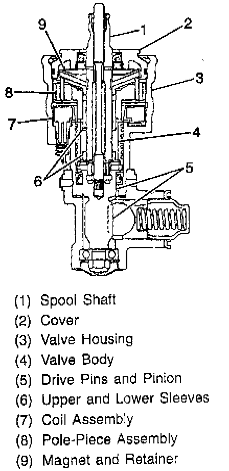 The MAGNASTEER actuator is an integral part of the power steering gear. The MAGNASTEER actuator consists of the following: