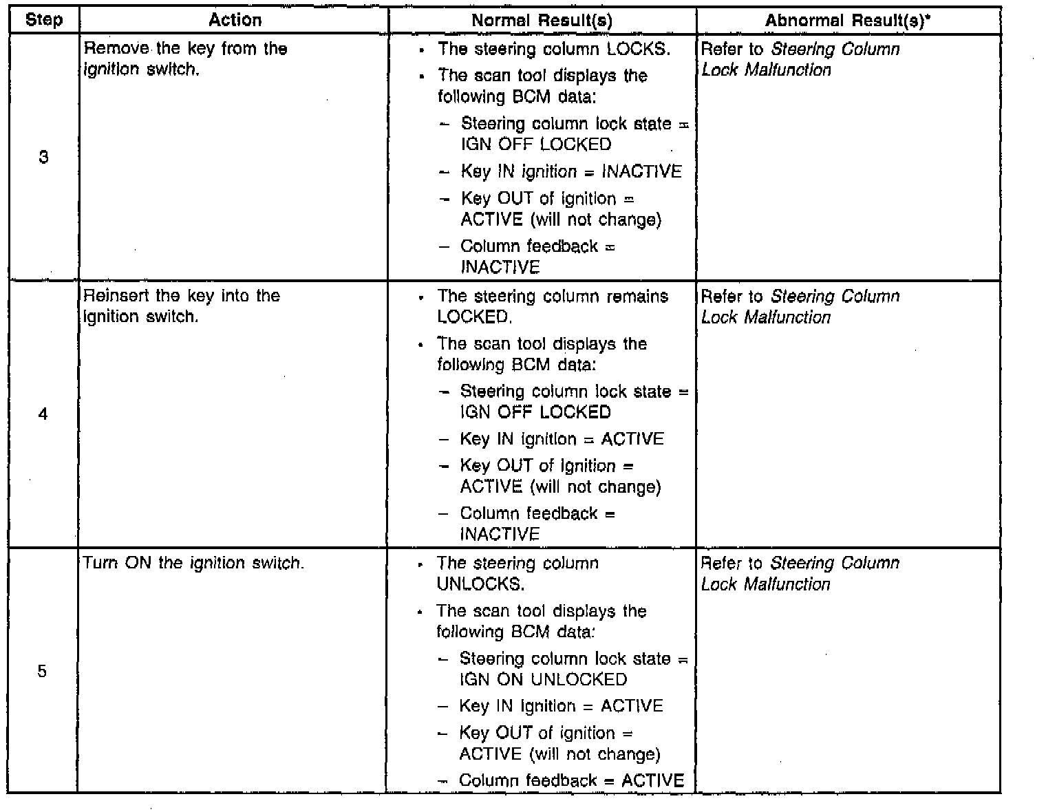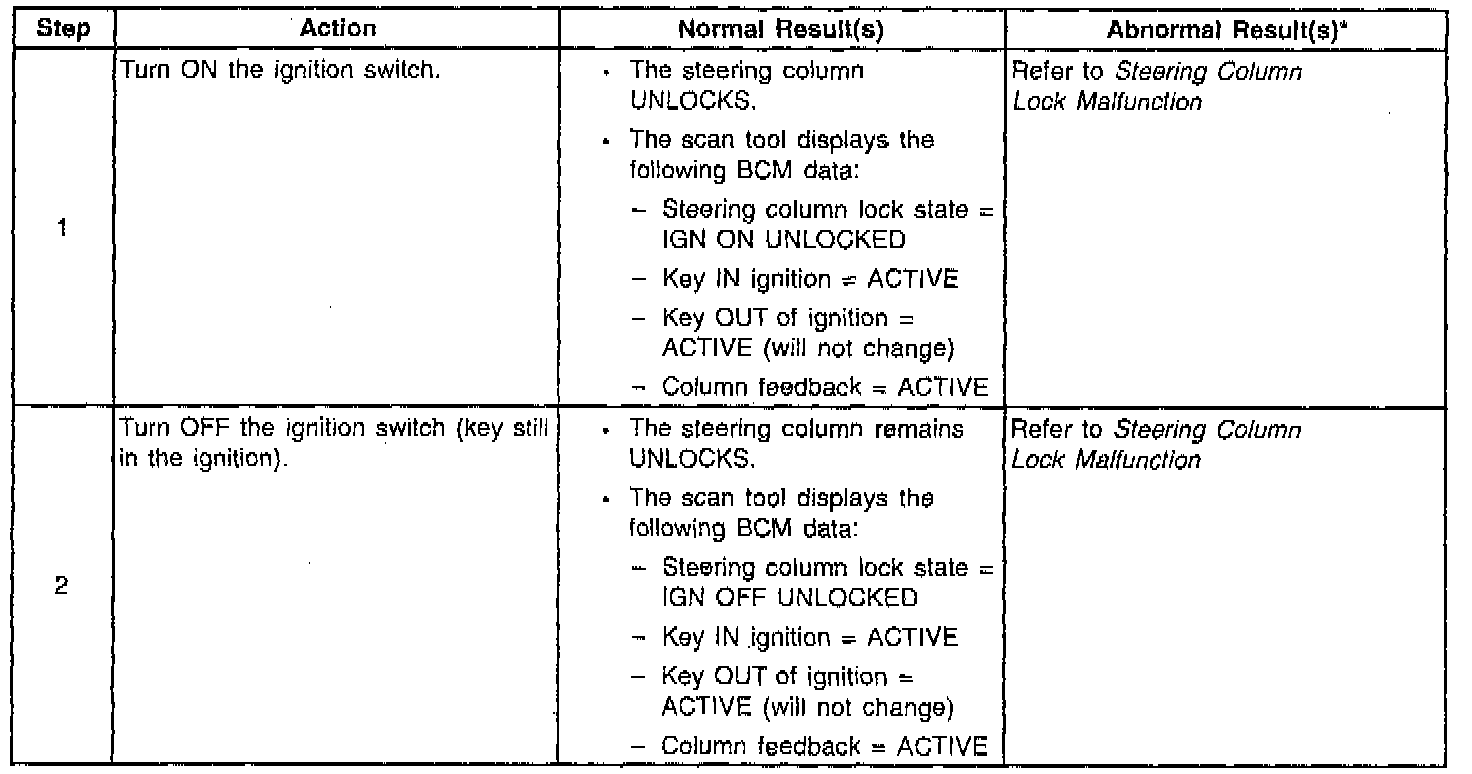 System Check - Steering Column Lock