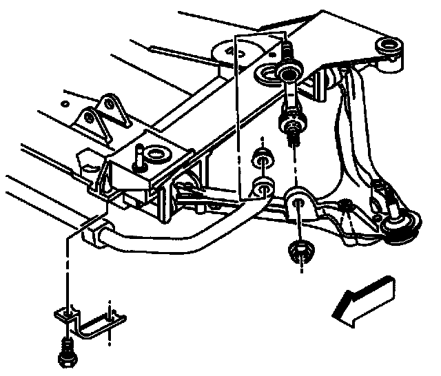 2. Install the stabilizer shaft and insulator clamp and bolts onto the crossmember.