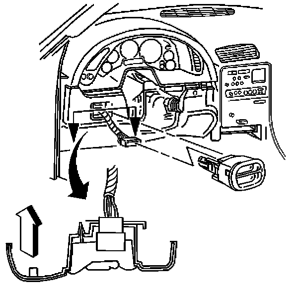 40. Connect the electrical connector to the combination fog lamp/trunk release switch and install the assembly into the opening in the IP. Press firmly to secure. Repeat this step on the inside air temperature sensor grill.