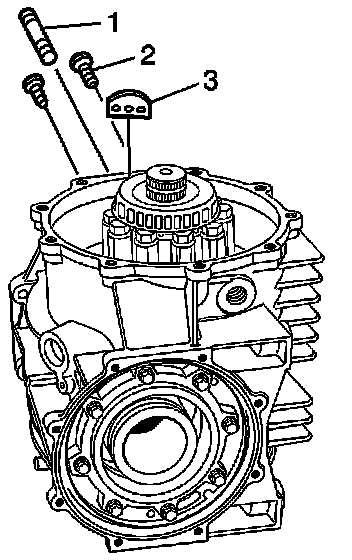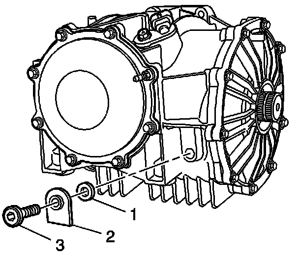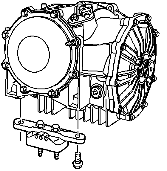 Apply thread locker GM P/N 1052942 (Canadian P/N 10953466) or equivalent to the threads of the bolts (2) and stud (1). Apply threadlocker only to the end of the stud that installs into the mount.