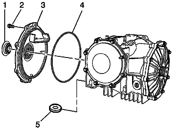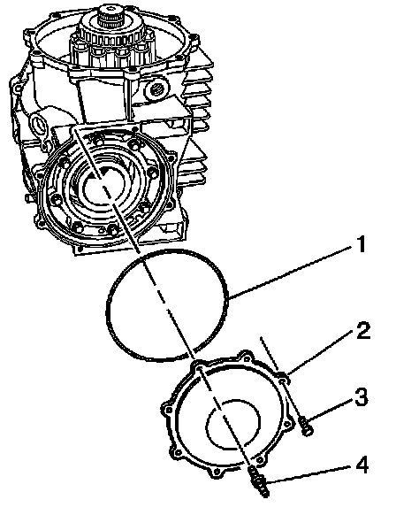 17. Install the cover - rear (2), bolts (3), bolt/stud (4), and 0-ring (1).