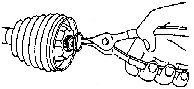 3. Remove the large seal retaining clamp from the CV joint seal. Use a side cutter or other suitable tool and discard the clamp.