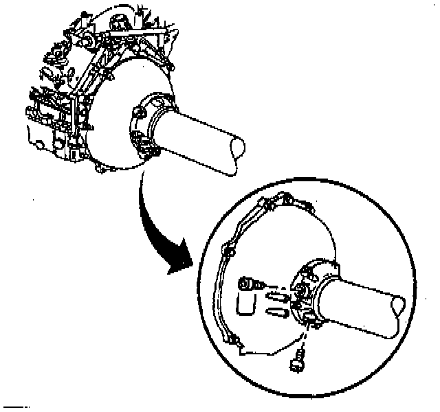 13. Install two bolts, M10-1.5 X 55 mm, or longer, in place of the plug bolts. (The long bolts are located to maintain the propeller input shaft front bearing in original position during removal and installation.)
