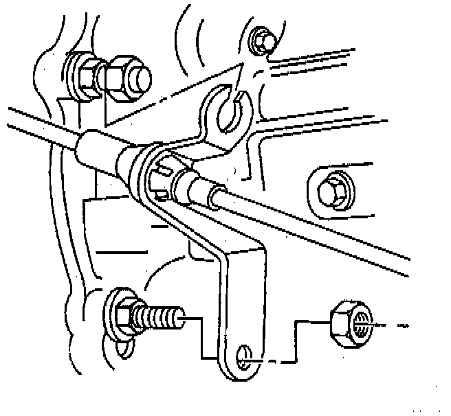 17. Remove the nuts retaining the transmission shift cable bracket to the transmission.