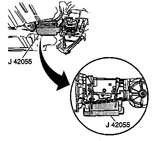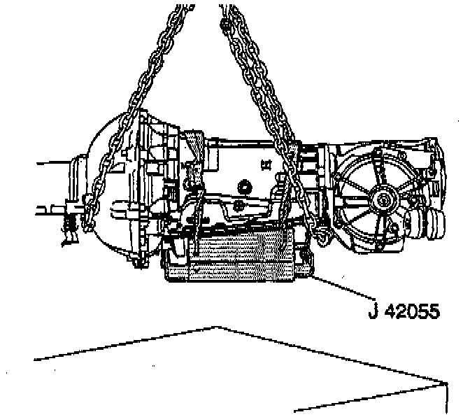 32. Install the J 42055 to a transmission jack.