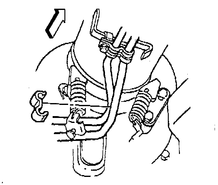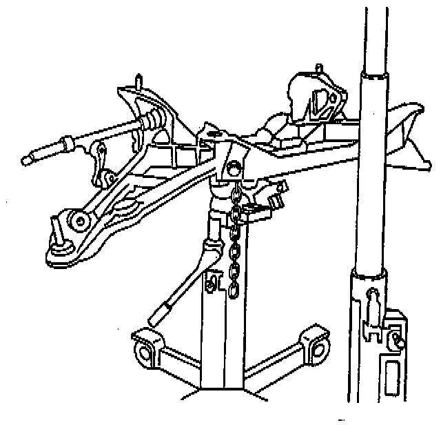 62. Position the chainfall, or equivalent, of a lift device in a way which will protect the transmission oil cooler rear pipes and the rear exhaust hangers located on the driveline support assembly.
