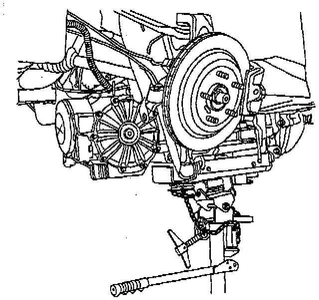 - When tilting down the rear of the driveline, observe the clearance between the rear of the engine and the composite dash panel. Do not allow the engine to rest unsupported against the composite dash panel, or vehicle damage may result.