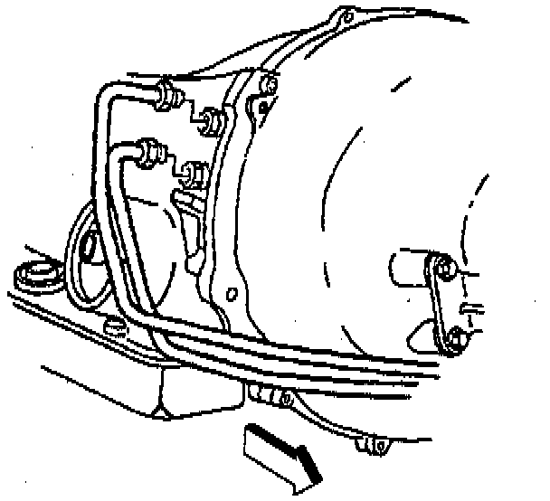 68. Disconnect the transmission oil cooler rear upper and lower pipe fittings from the transmission fittings.