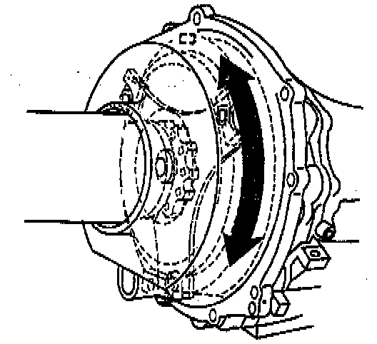- Carefully WALK the transmission torque converter to the transmission flywheel through the torque converter access plug opening, if necessary. DO NOT use the bolts to draw the torque converter to the flexplate.