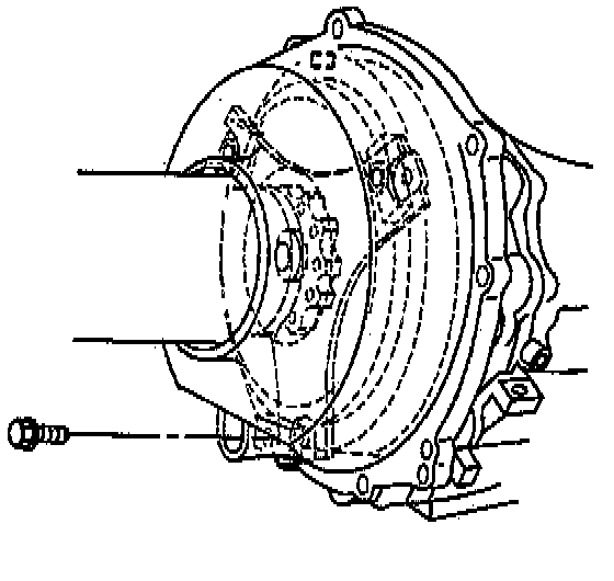 2. Align the one of the torque converter bolt holes with the driveline support assembly access hole, if necessary. Carefully rotate the torque converter, working through the access holes in the rear bell housing and the transmission housing.