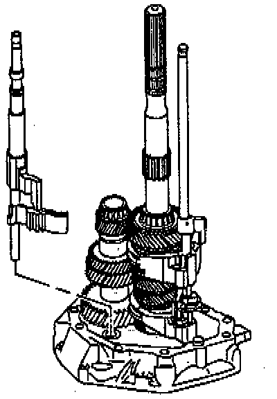 3. Remove the countershaft. Lift up the mainshaft enough in order to remove the countershaft.