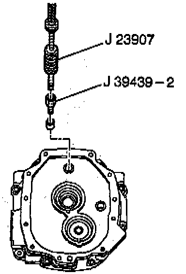 5. Remove the 1ST/2ND and the 3RD/4TH shift shaft bushing. Use the J 23907 with the J 39439-2.