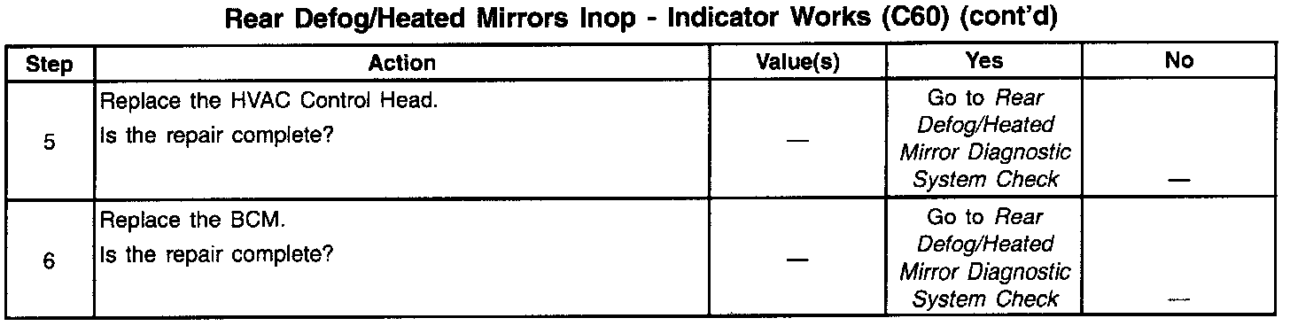 Rear Defog/heated Mirrors INOP: Indicator Works (C60) (Part 2 Of 2):