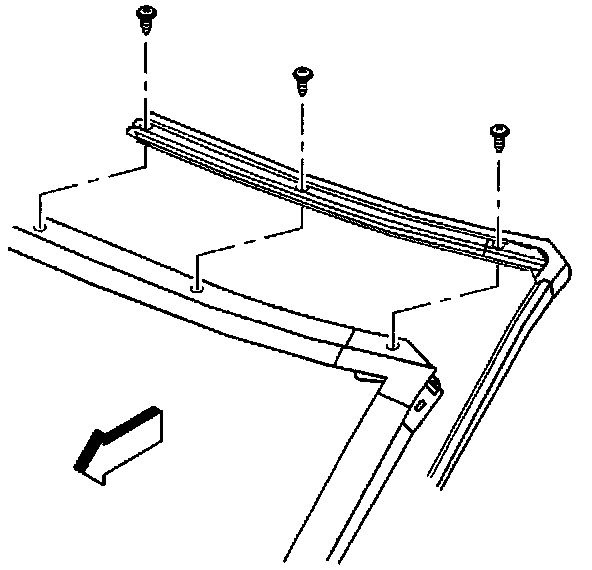 6. If replacing the weatherstrip with a new weatherstrip, remove the upper retainer screws and retainer from the windshield frame.