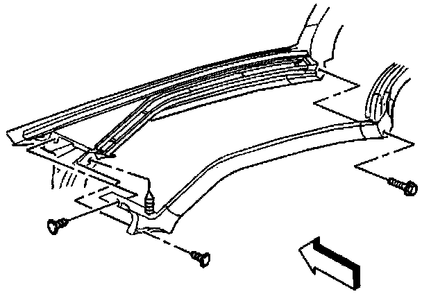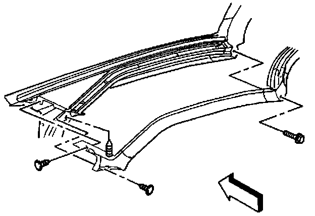 1. Remove the windshield weatherstrip from the weatherstrip side retainer and partially from the windshield frame.