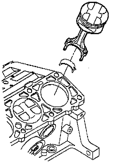11. Push out the piston and connecting rod with a suitable tool. Do not use force. Avoid breaking the piston rings. Do not damage the piston.