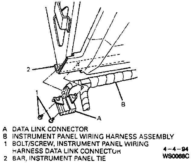The data link connector is under the instrument panel, to the right of the steering column. It is part of the instrument panel wiring harness.