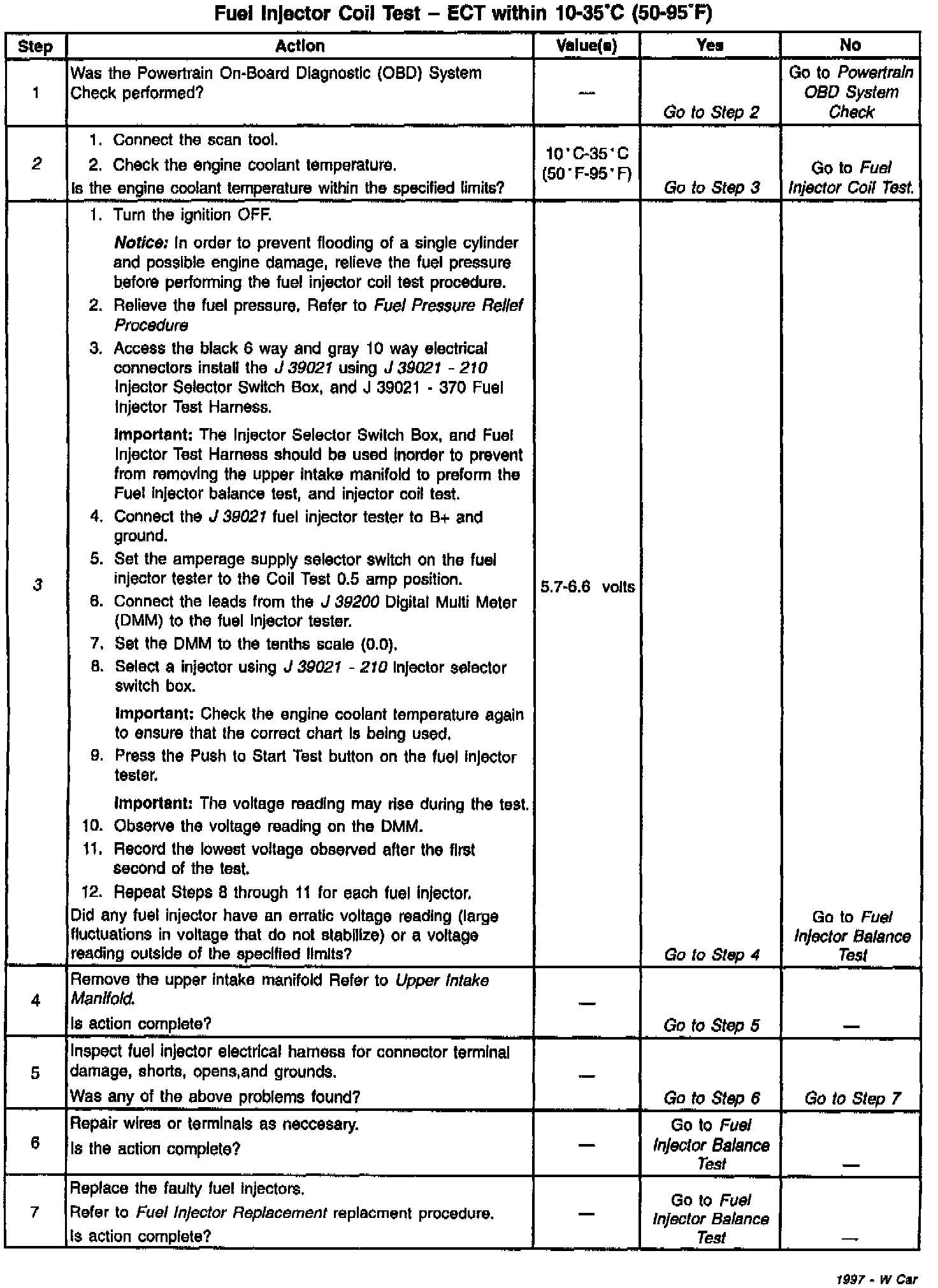 Fuel Injector Coil Test - ECT Temp Between 10-35 Deg C