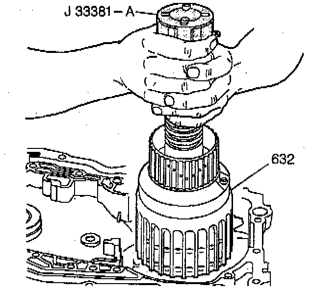 2. Install J 33381-A into the input clutch housing assembly(632).