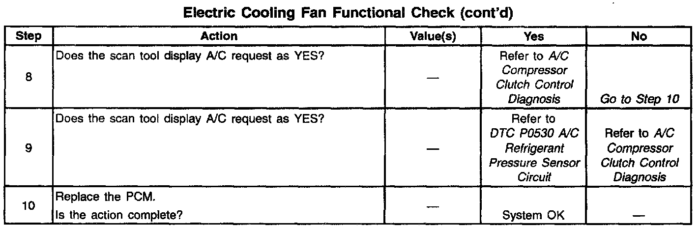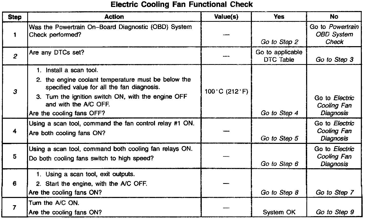 2. The PCM will enable the engine cooling fans when certain Diagnostic Trouble Codes are set Go to applicable DTC Table first before proceeding with this table.