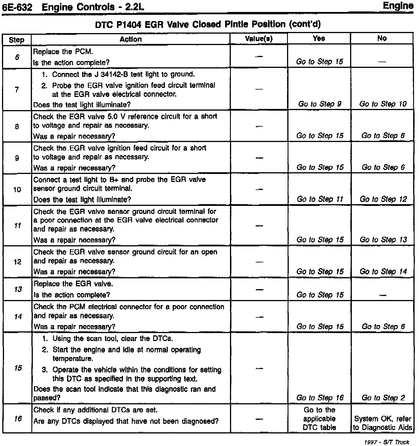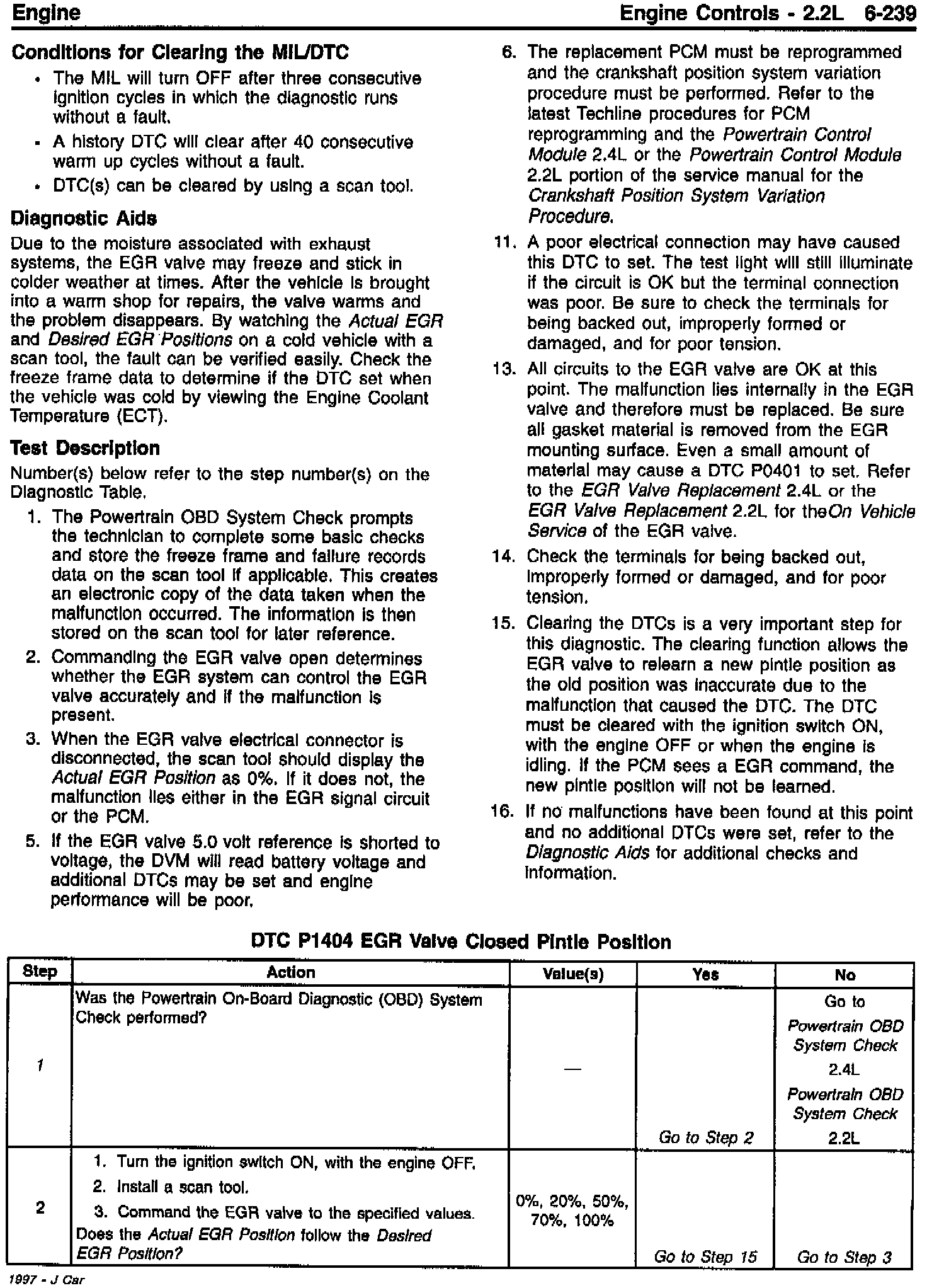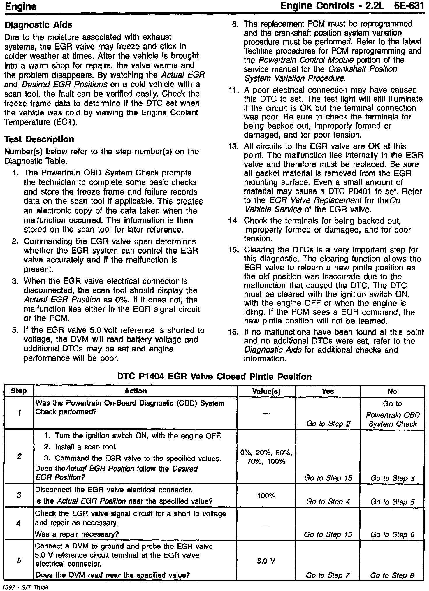 This bulletin is being issued to revise the DTC P1404 EGR Valve Closed Pintle Position Table in the following Service Manuals: