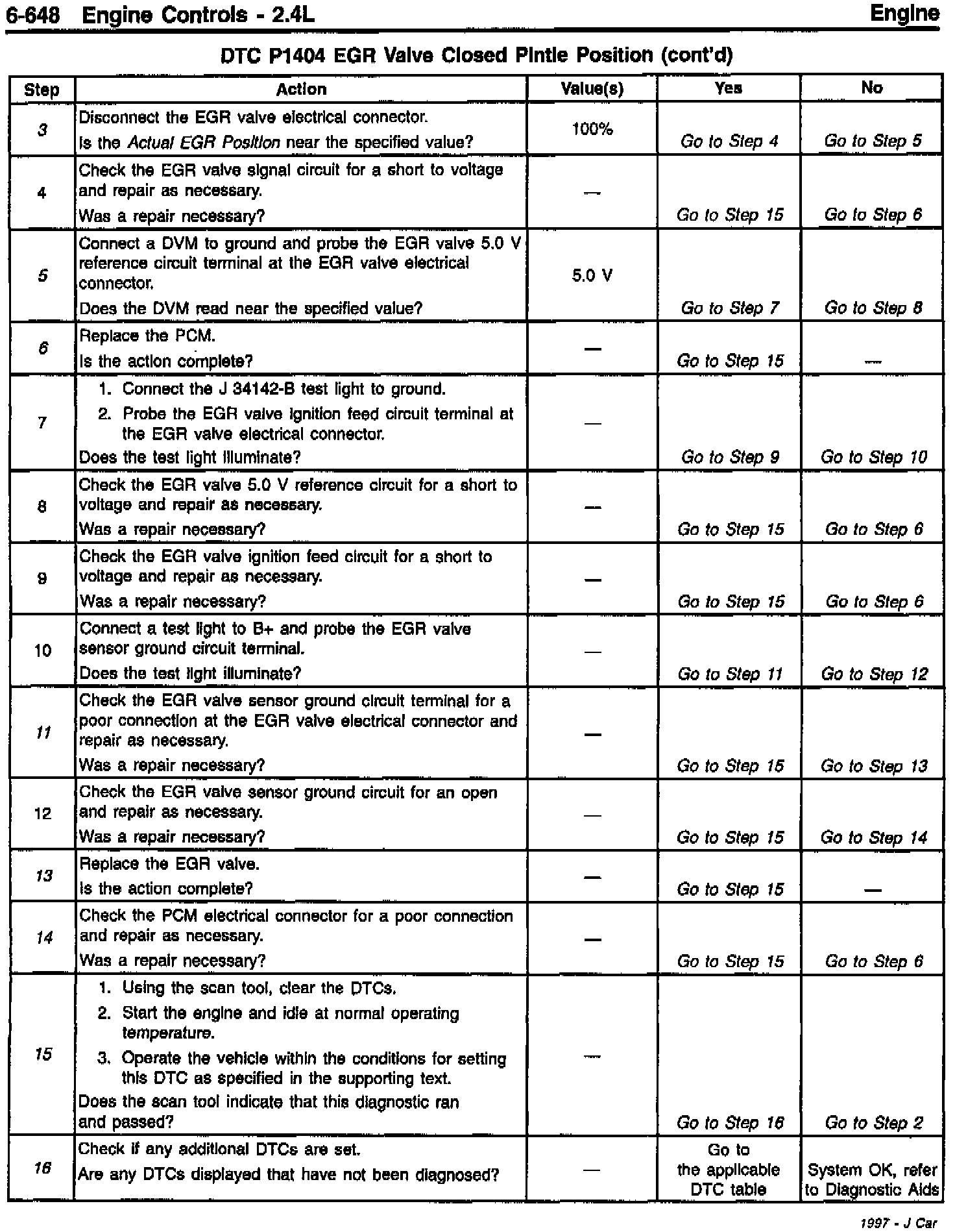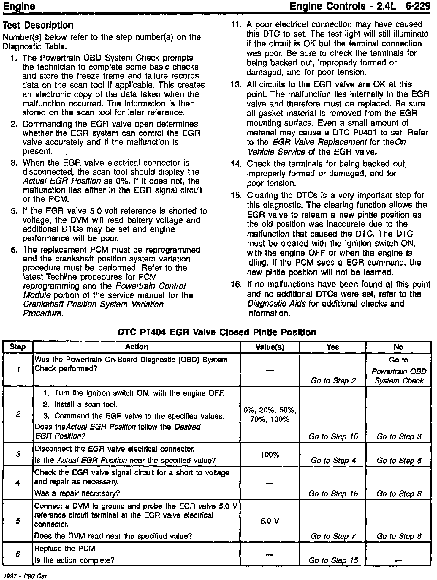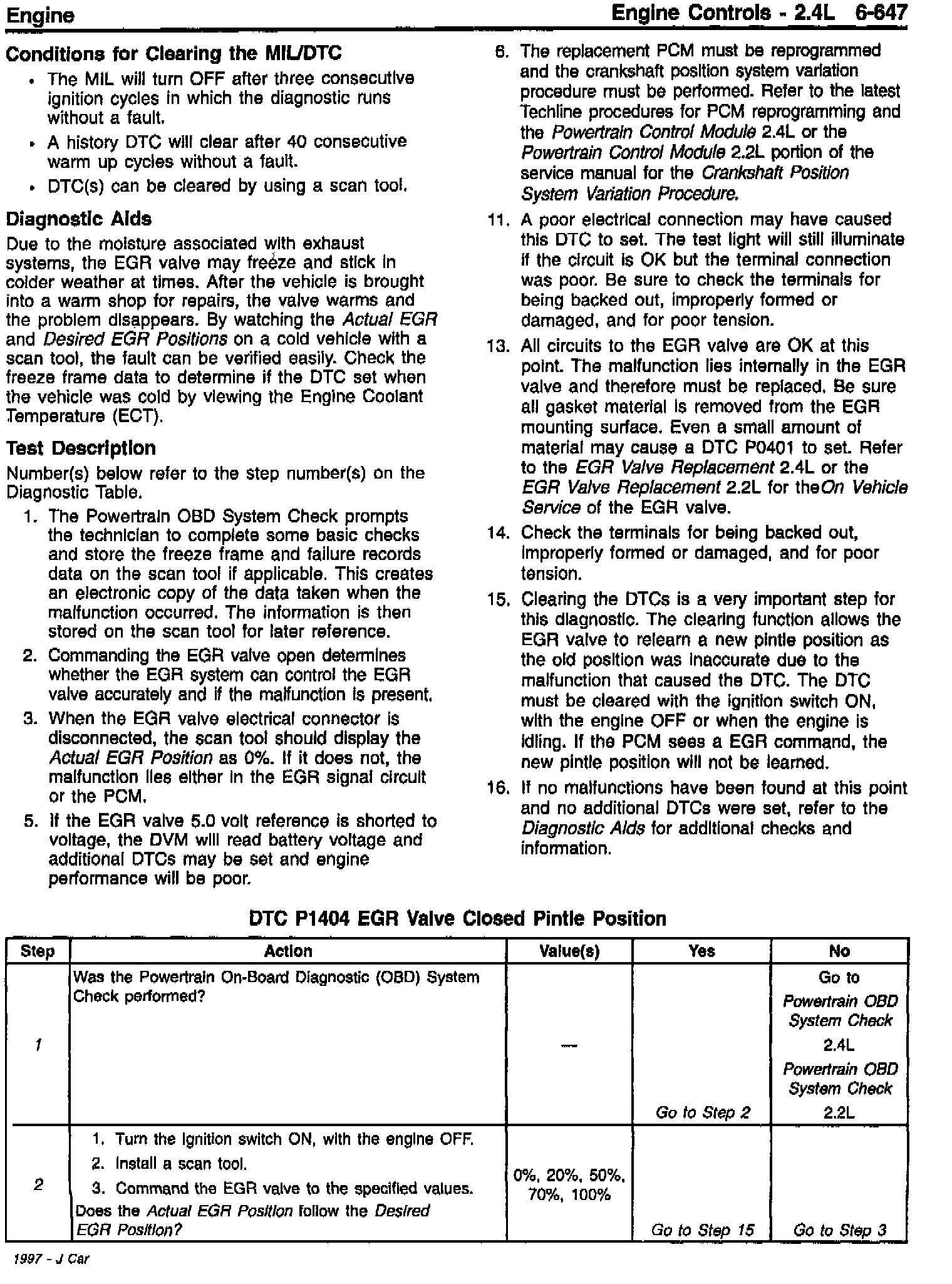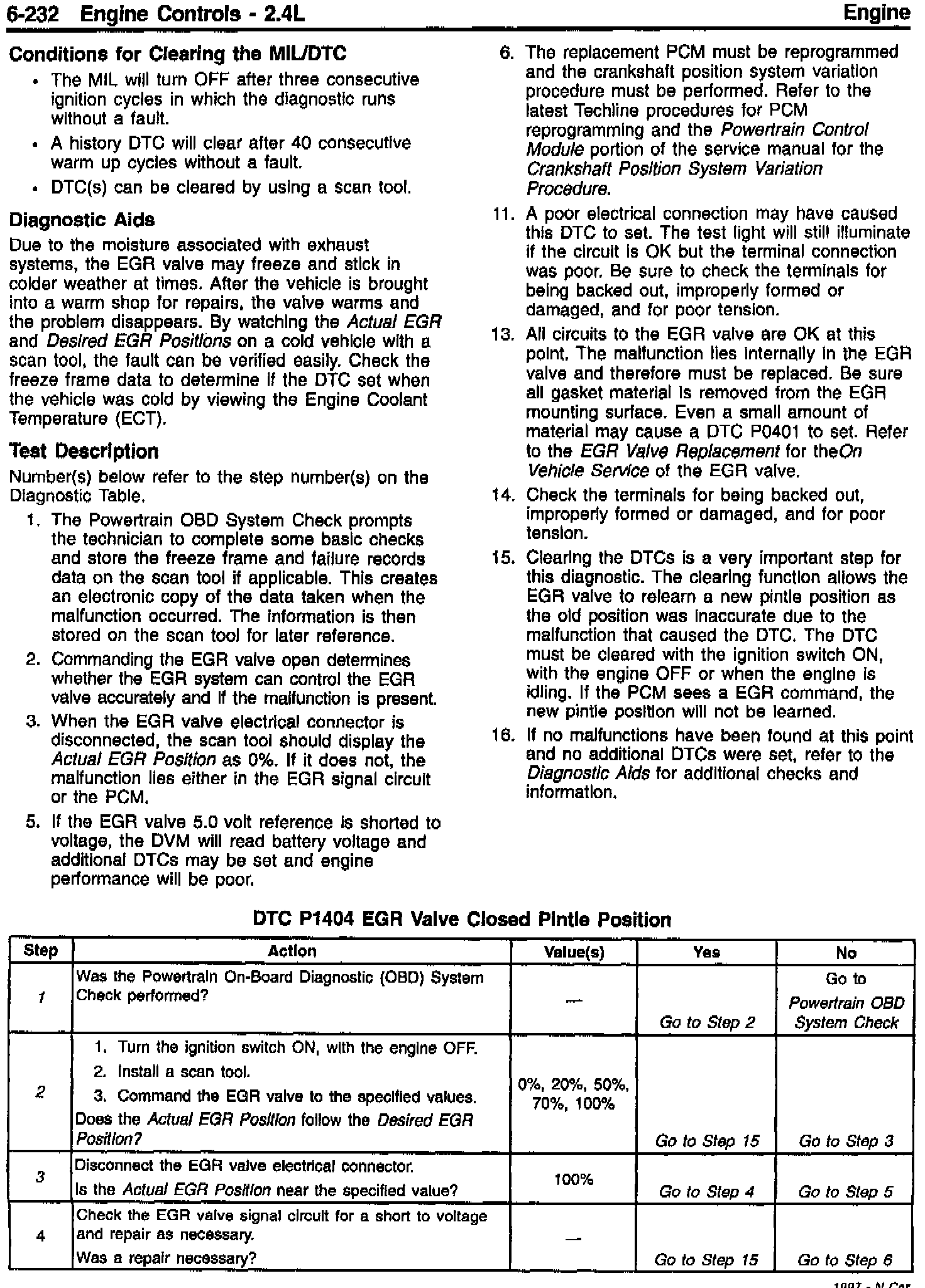 Section 6E3 - Driveability and Emissions - Revised DTC P1404 EGR Valve
