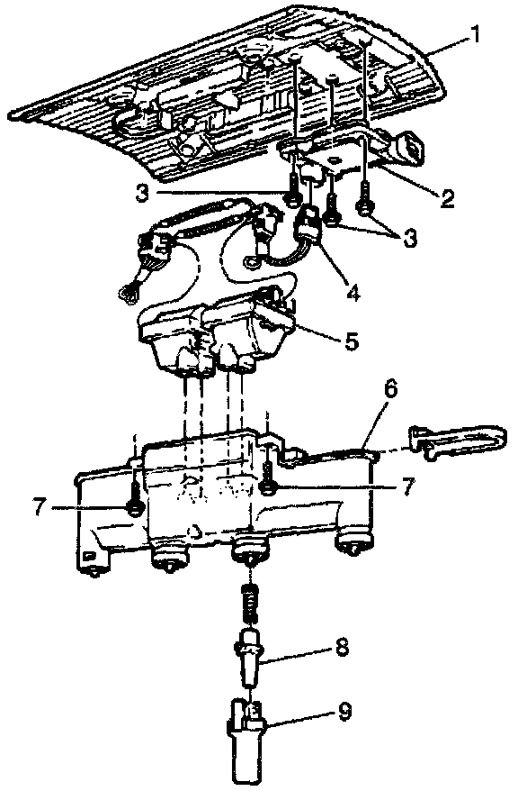 8. Install the ignition coil and electronic ignition control module assembly to the engine while carefully aligning the boots to the spark plug terminals.